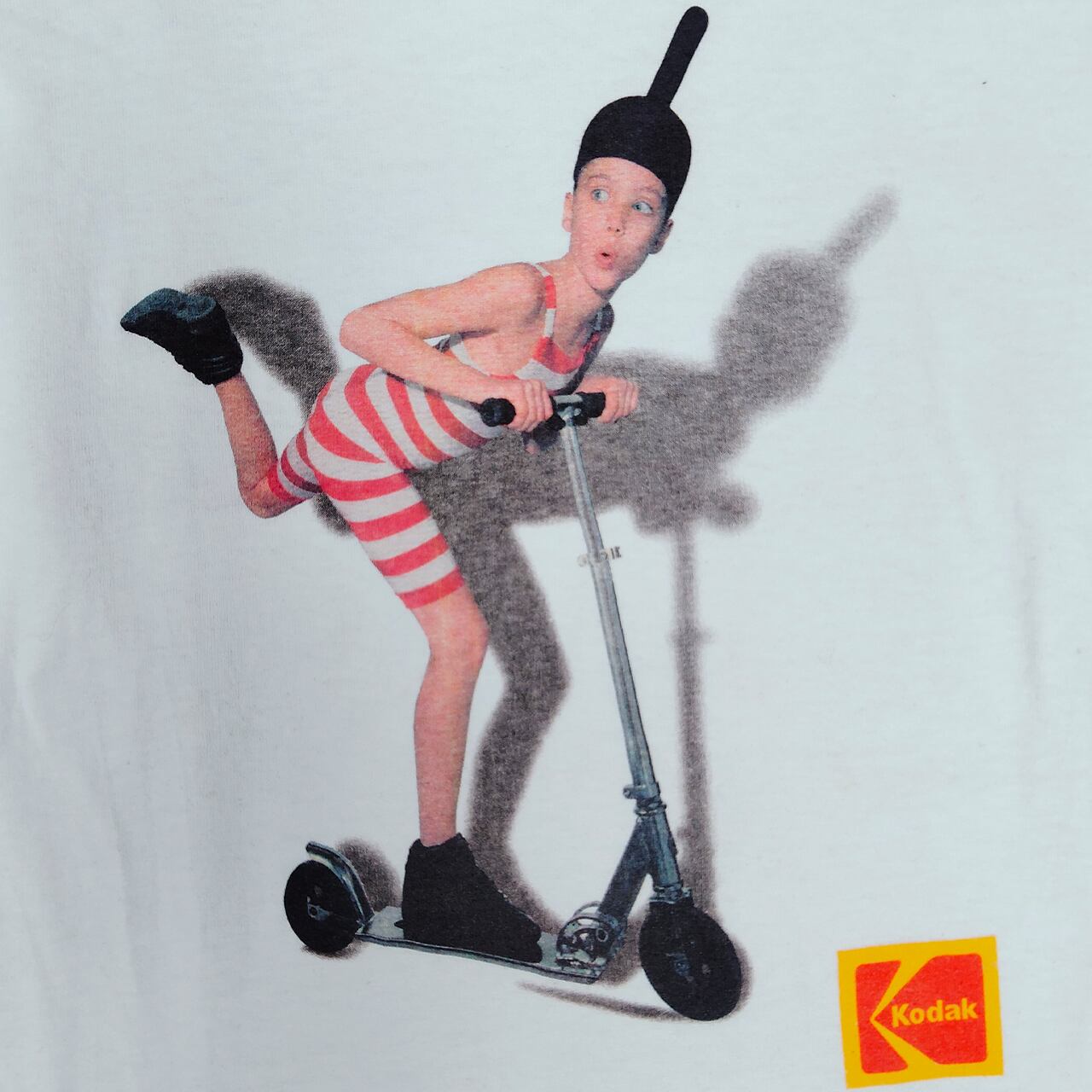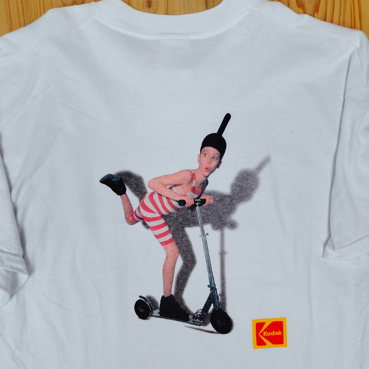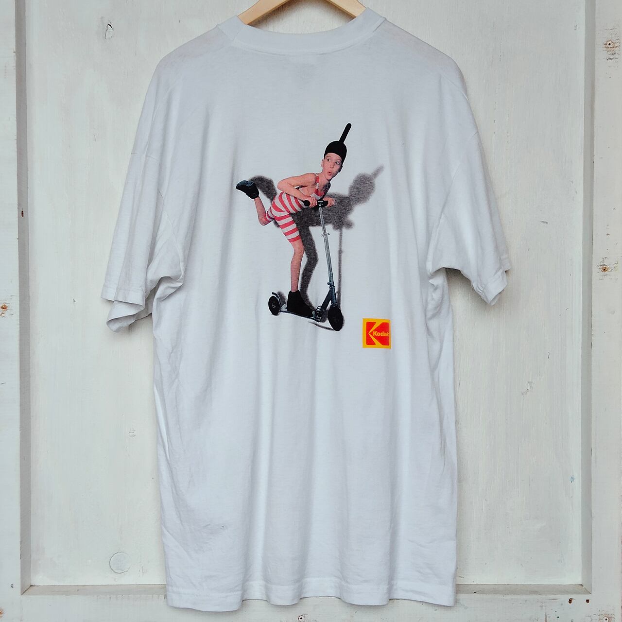 コダックフィルムのプロモーションTシャツです。90年代にフランスで展開されたコダック広告のキャラクター”色泥棒”がプリントされた、ユニークでレアな一品です。