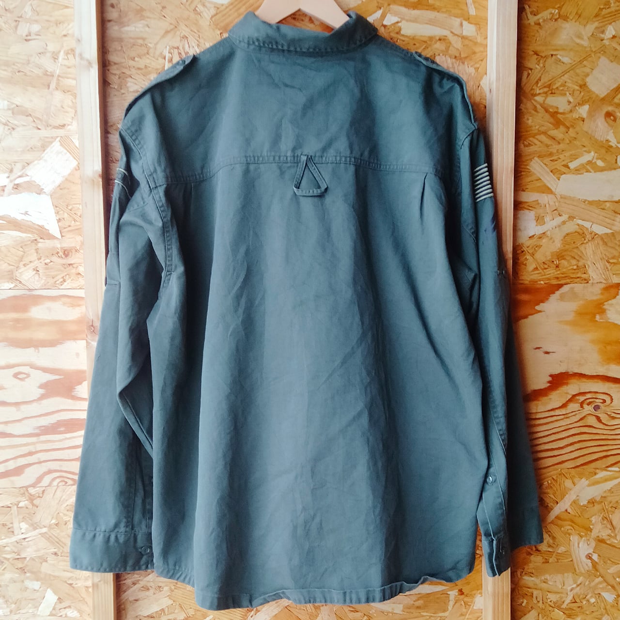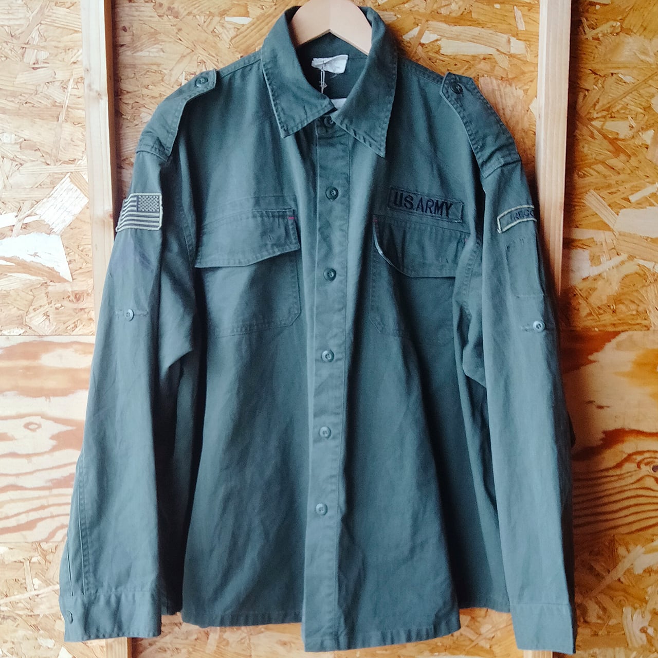 オリーブグリーン色のUSアーミーのミリタリーシャツです。