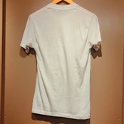 状態:タグ欠損、使用感あり、胸に汚れ、右袖後ろ側にピンホールあり、えりぐりに縫製のほつれあり、下に黄ばみあり