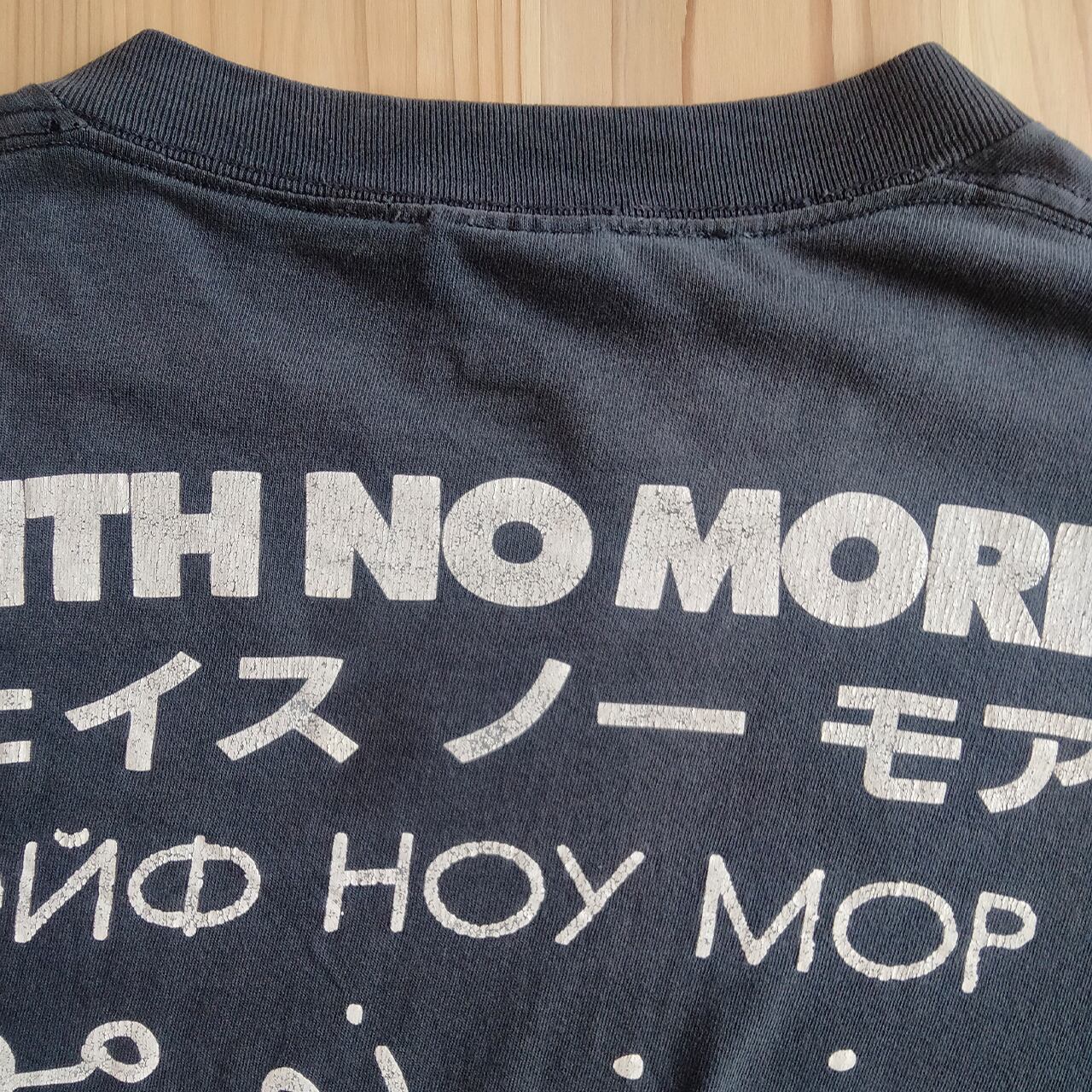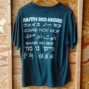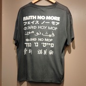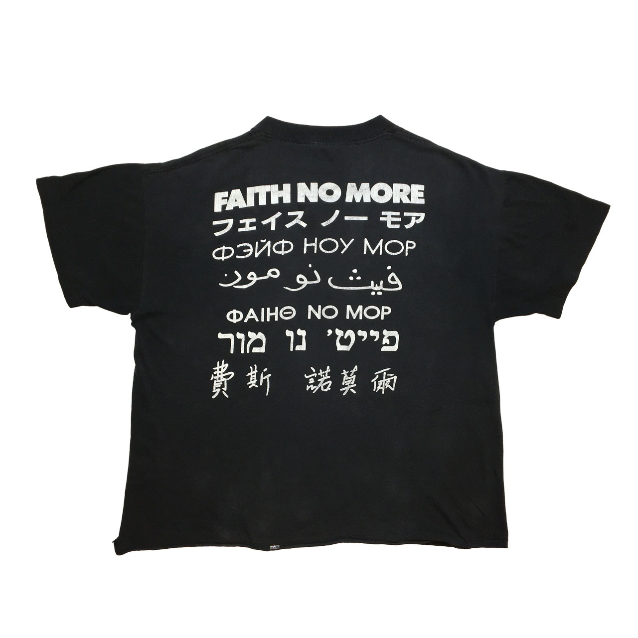 アメリカのロックバンド Faith No More。前面にはインパクトのあるデザイン、背面には複数の言語でFaith No More と書かれたユニークなヴィンテージTシャツです。