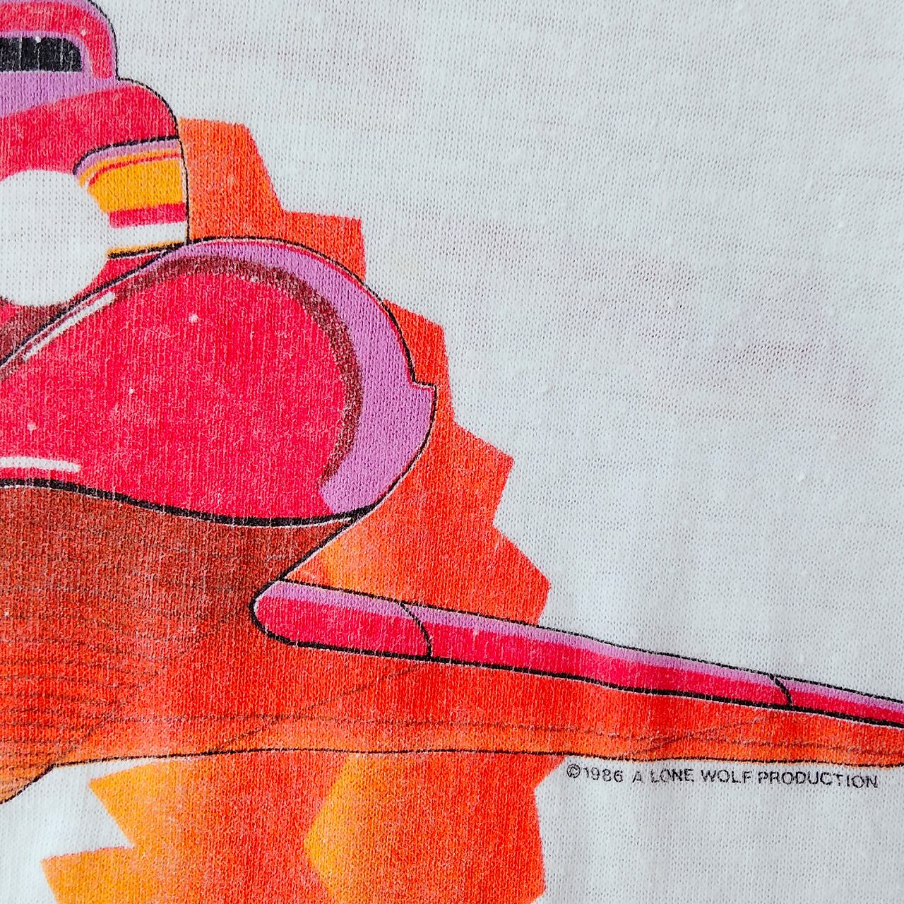 1986年の「Afterburnerツアー」を記念した、ZZ TopのロングスリーブTシャツです。特徴的なグラフィックが前面にプリントされており、ヴィンテージ感溢れる一品です。音楽ファンにはたまらない、懐かしいデザインをお楽しみください。