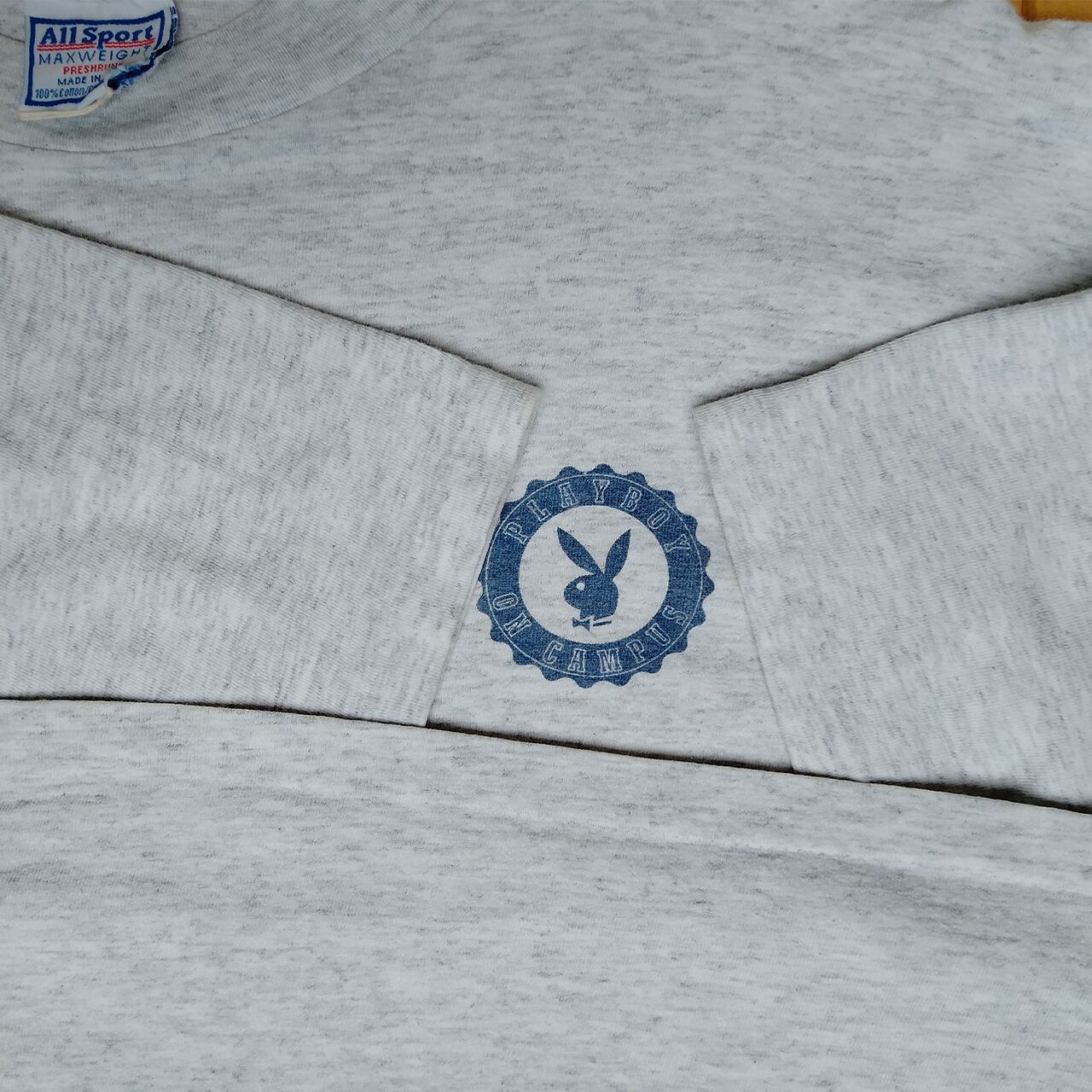 プレイボーイのおなじみのロゴがさりげなく前後にプリントされた、シンプルながらも存在感のあるヴィンテージTシャツです。