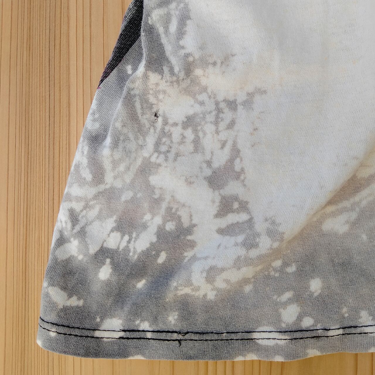 ドアーズの伝説的なフロントマン、ジム・モリソンをフィーチャーしたヴィンテージTシャツが登場!オールオーバープリントのデザインは、彼のカリスマ性を余すところなく表現しており、音楽愛好者はもちろん、ユニークなファッションを楽しむ方にも最適な一品。首回りがカットオフされた、手刷りプリントは一点物です。